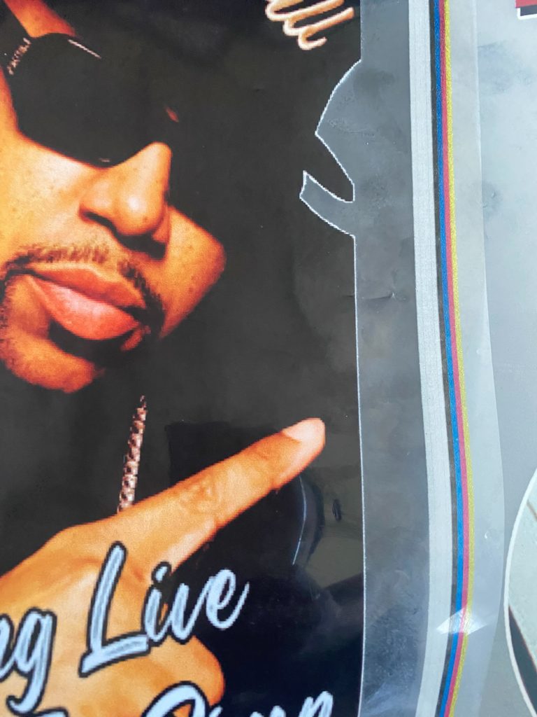 Transparent or translucent gradient IS NOT recommended, it will lose it “blending” effect where transparency of 30-40% will start to break and create jaggy edges in your artwork because the printer will lay white under them thinking there is color there creating an effect like the one below.(How to fix the issue) Make the gradient more solid or remove it completely from the design.