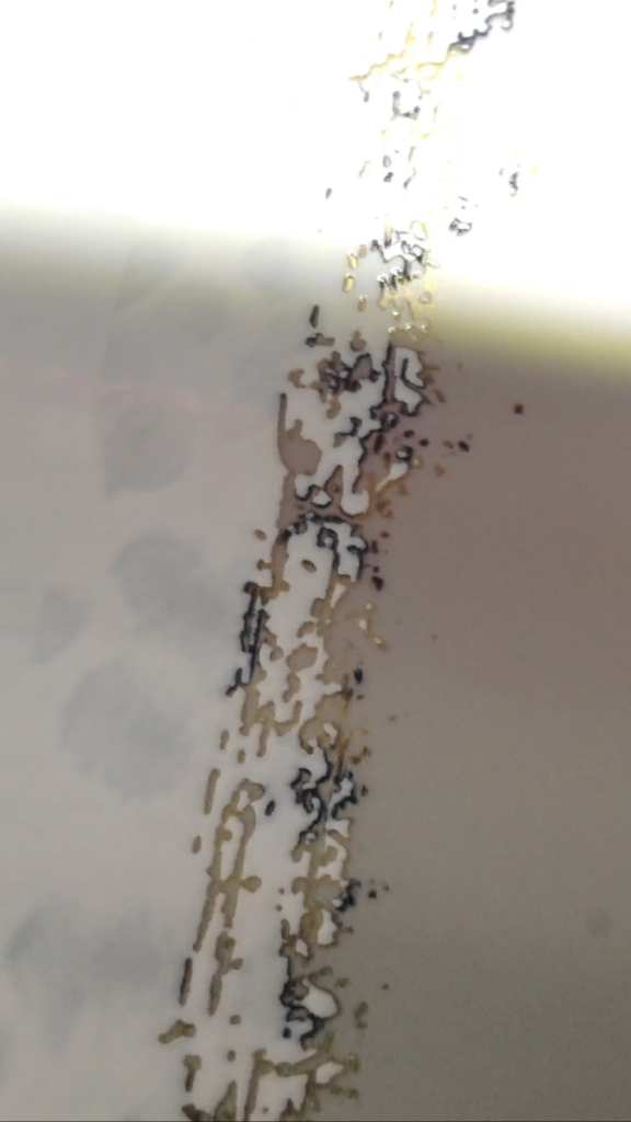 Check your artwork edge quality and make sure they are sharp enough and does NOT contain “dirty” colors resulted from badly removed background process. How to check the quality of the edges simply zoom in at 100% and if it looks like the image on the top the output will be like the image on the bottom.(How to fix the issue) You will need a higher resolution image or get the design vectorized by a designer.